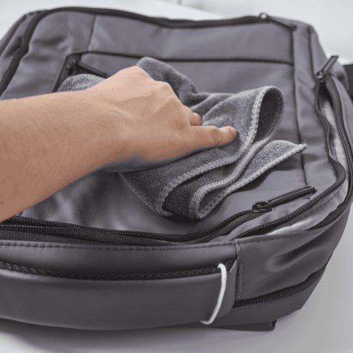 - Bước 2: Dùng khăn ướt lau qua bề mặt balo để loại bỏ bụi bẩn.