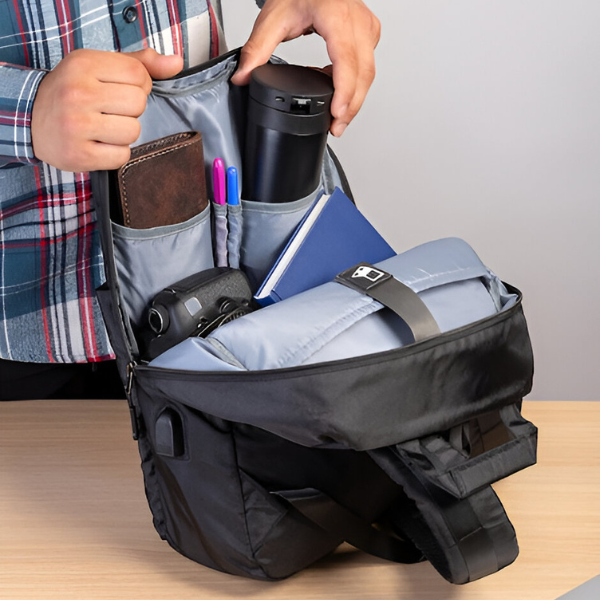 Theo nghiên cứu người dùng, balo có 3 – 5 ngăn phụ giúp tăng tính tổ chức, tiết kiệm 30% thời gian tìm đồ so với balo chỉ có 1 ngăn lớn. Đặc biệt, các ngăn ngoài bằng lưới co giãn sẽ rất hữu ích để cất chai nước hoặc ô gấp.