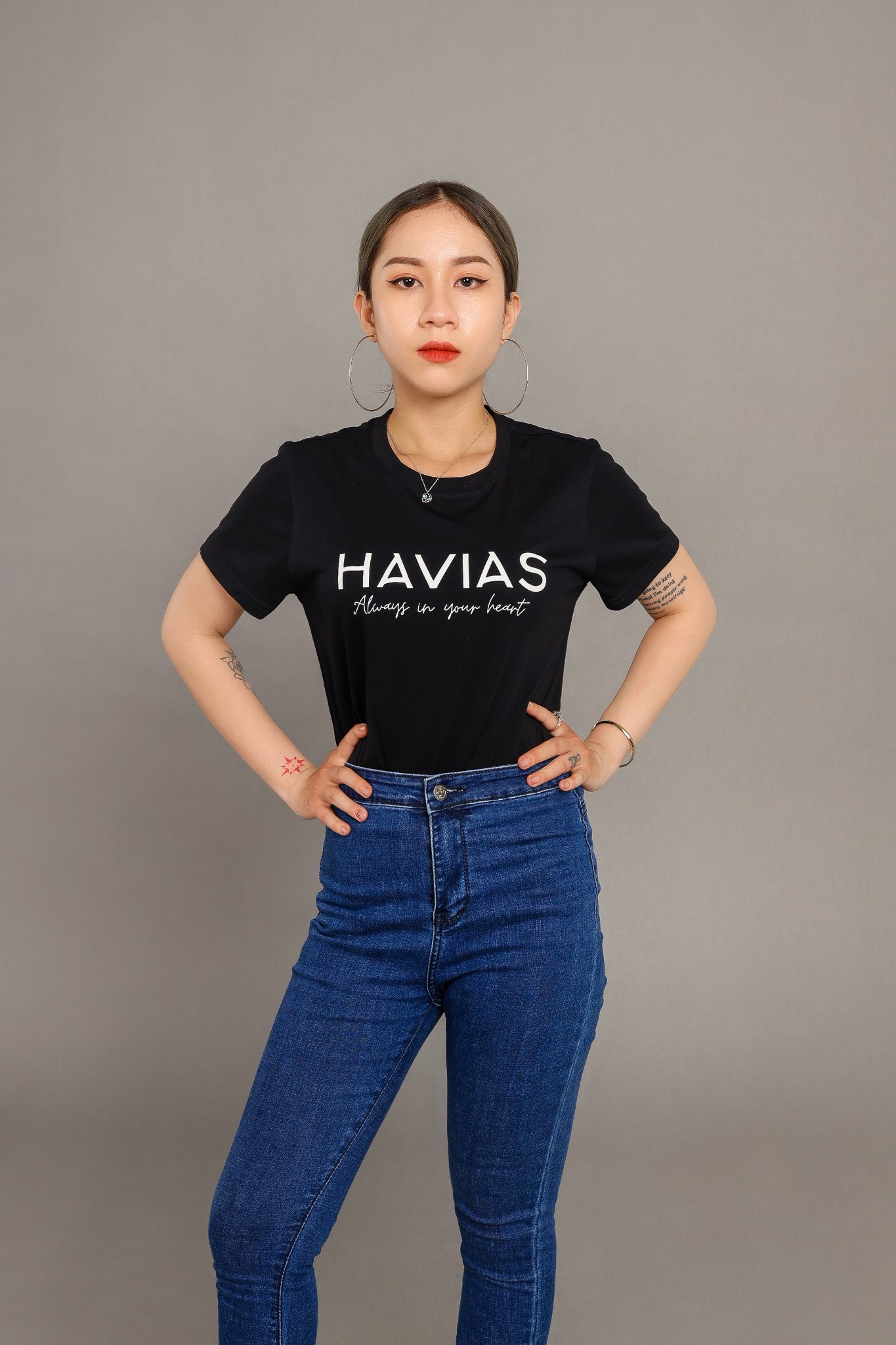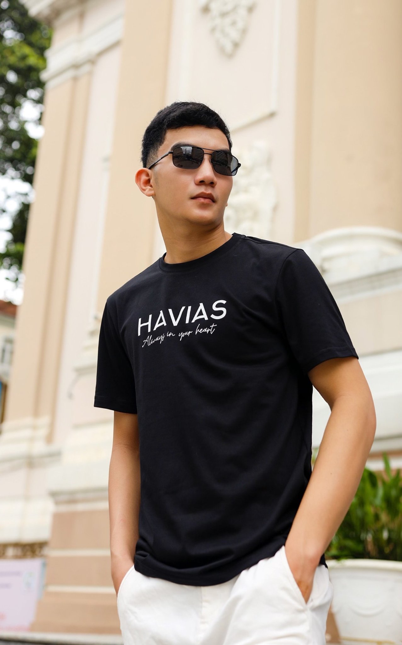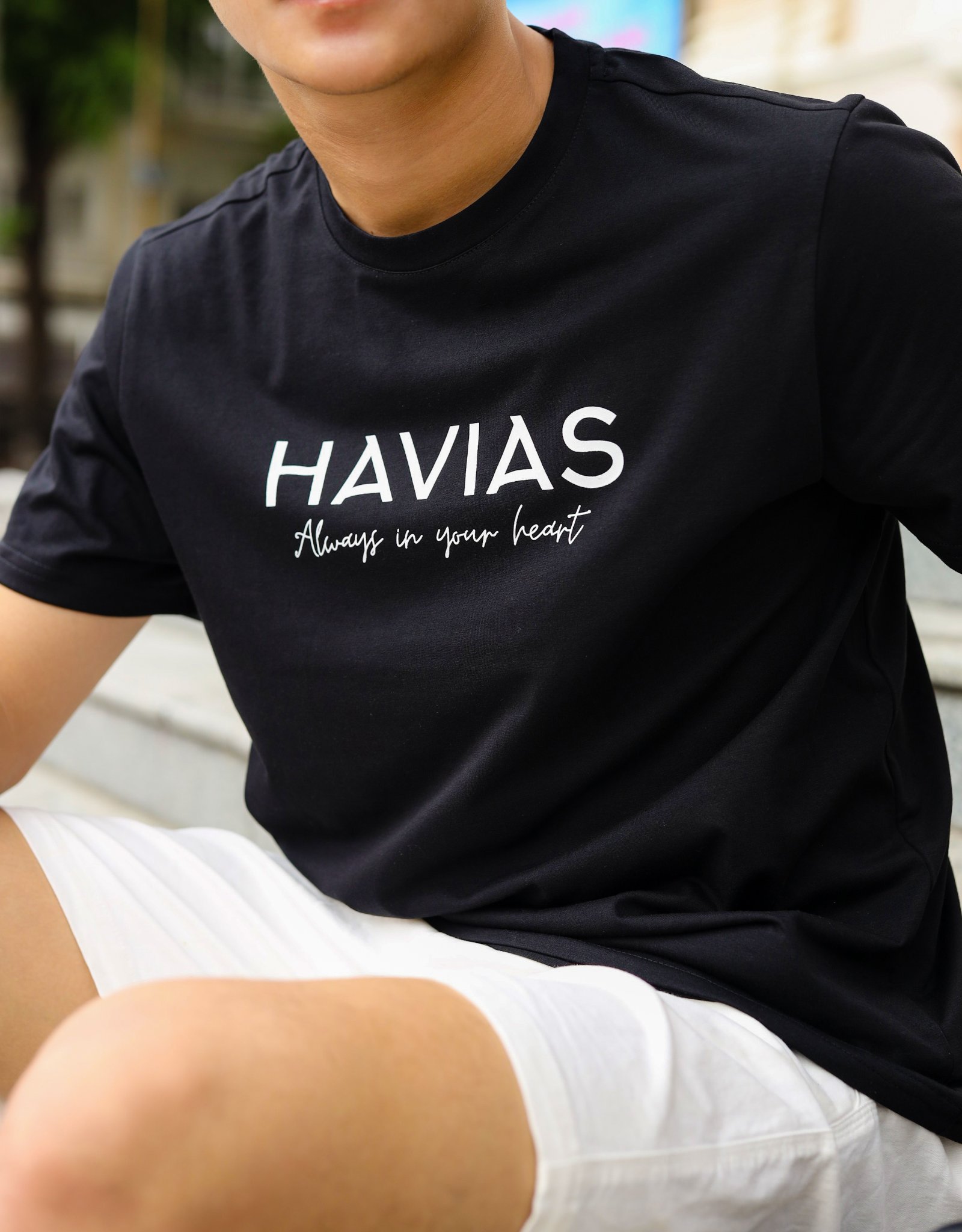 • Thiết kế áo: Áo thun cổ tròn, với thiết kế có logo tên thương hiệu của HAVIAS.