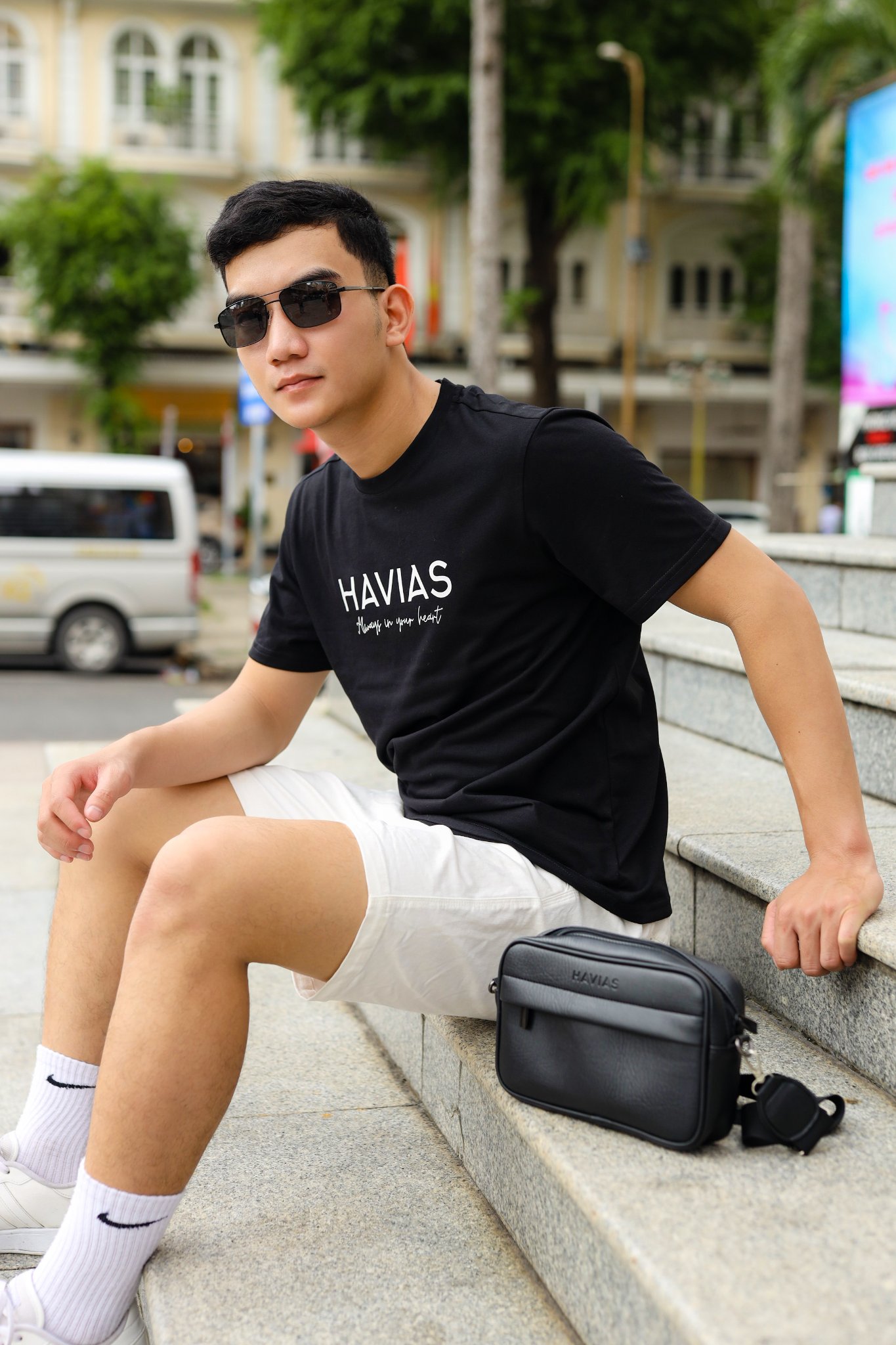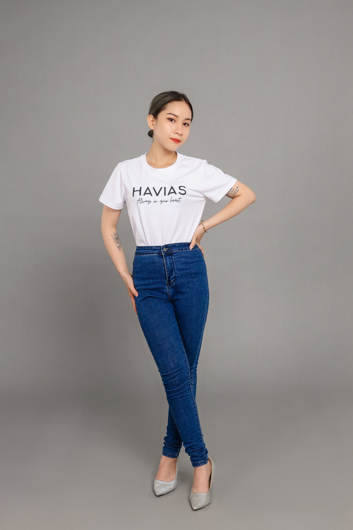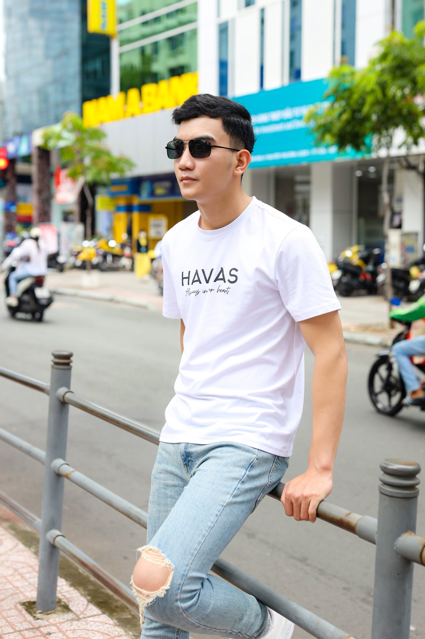 • Thiết kế áo: Áo thun cổ tròn, với thiết kế có logo tên thương hiệu của HAVIAS.
