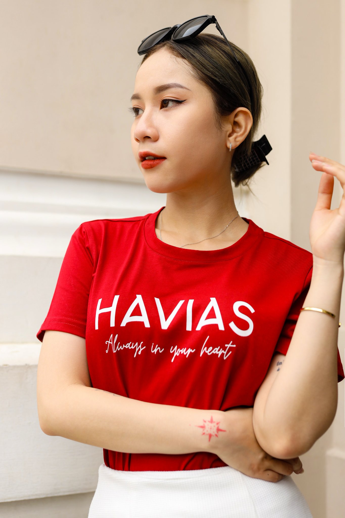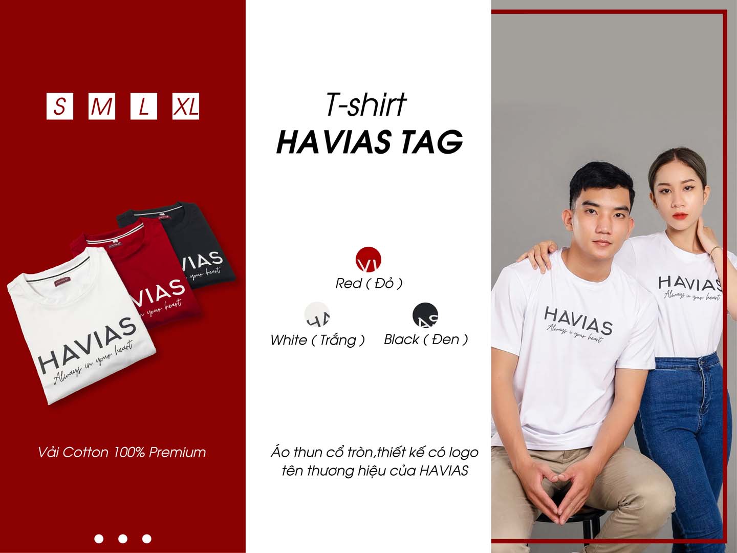 Cotton T-shirt TAG HAVIAS, designed from imported Premium Cotton Fabric, which is extremely thick, cool and UV resistant.. The shirt features a round neck design, which is simple but still has a "luxury" Western style with a variety of colors, giving customers many interesting experiences.