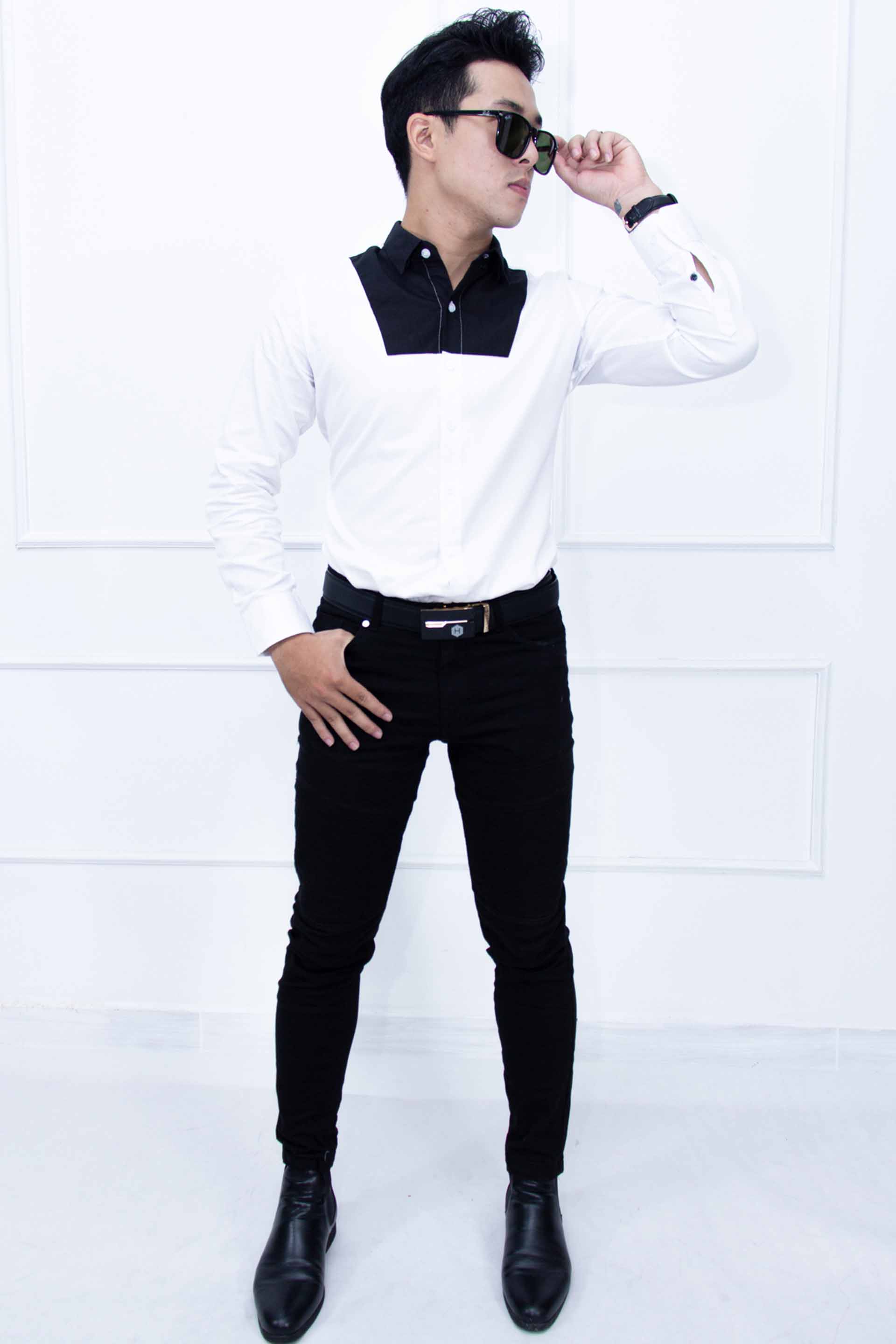 Sơ mi Trắng cao cấp được thiết kế may nối vải Đen phần ngực trước, đậm chất Classy quý tộc hoàng gia. Sang trọng, lịch lãm, thoáng mát là những tính từ nổi bật cho sản phẩm này.