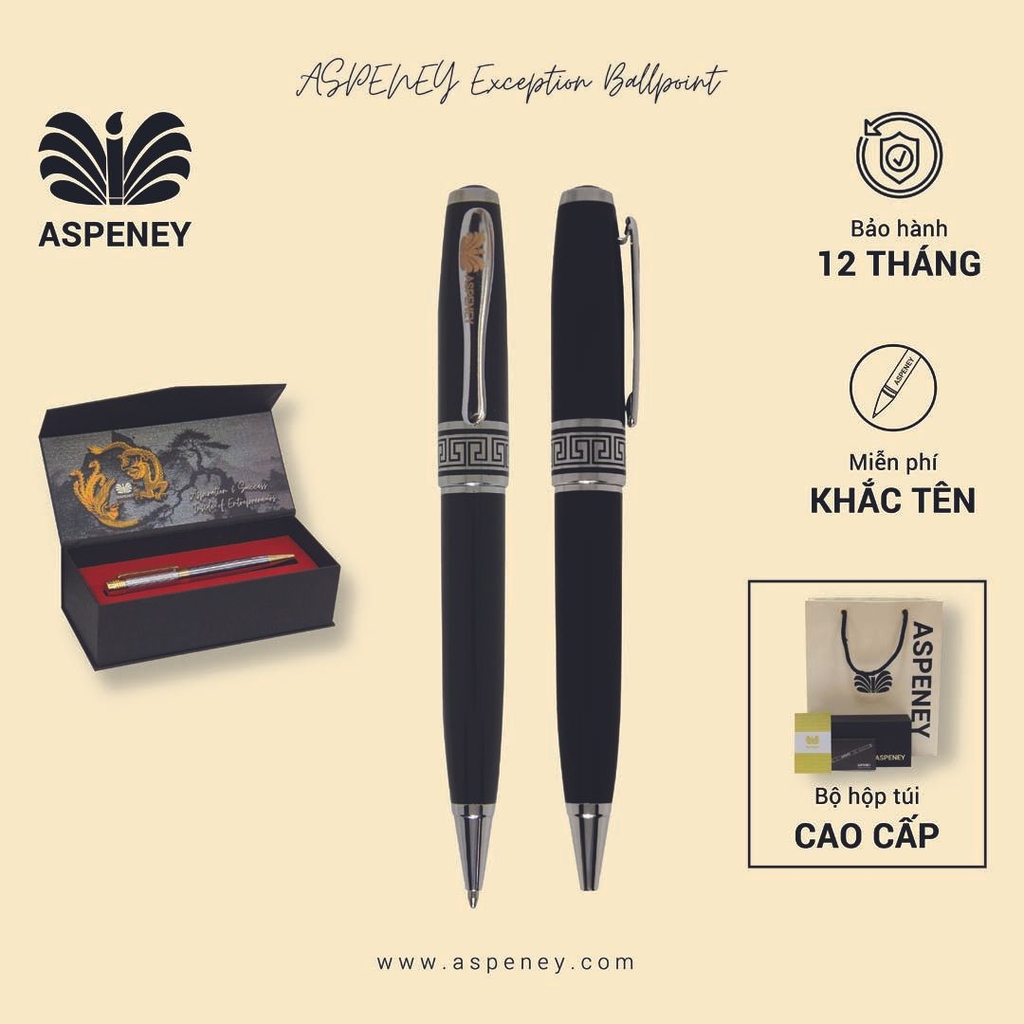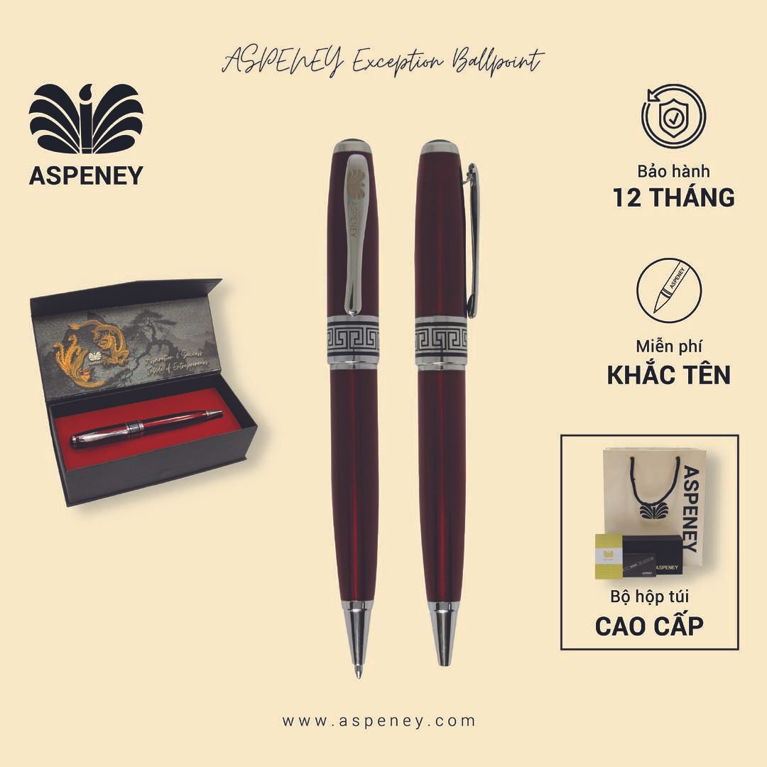 Bút dạ bi ASPENEY Exception Ballpoint được chế tác thật tỉ mỉ, cầm cây bút lên mang một hơi thở đặc biệt đúng như cái tên của nó, họa tiết được khắc tinh xảo làm điểm nhấn của bút, nhìn vào họa tiết đấy ta thấy được vẻ đẹp của dân tộc, tựa như hoa văn trên trống đồng đông sơn.