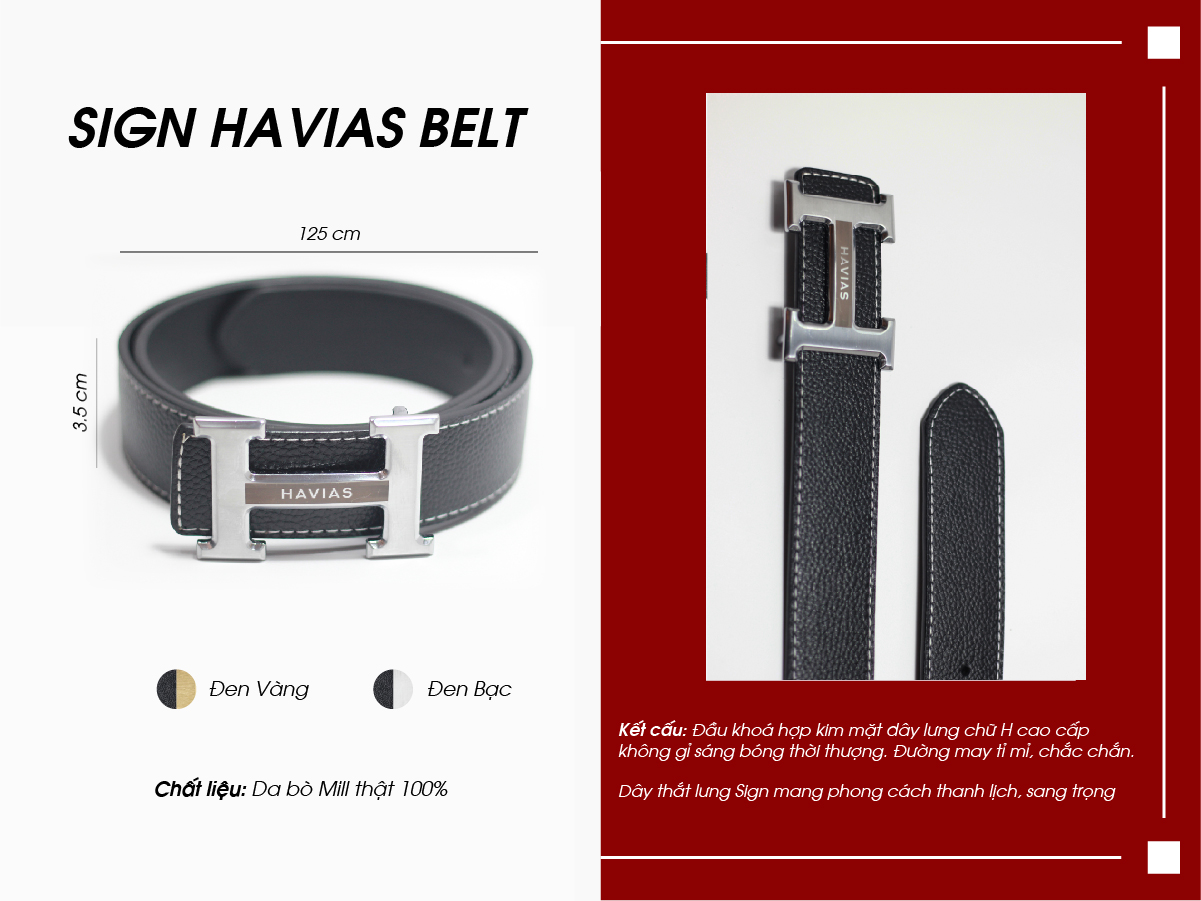 Thắt lưng HAVIAS Sign đem đến sự phong độ và đỉnh đạt cho phái mạnh. Với thiết kế mạnh mẽ, tối giản, thắt lưng chữ H HAVIAS Sign thích hợp cho mọi hoàn cảnh từ đi chơi, đi làm, những buổi tiệc hay ngay cả những cuộc họp hành. Kết hợp giữa sự hiện đại pha chút cổ điển, sản phẩm cũng vô cùng dễ sử dụng với nhiều lứa tuổi.