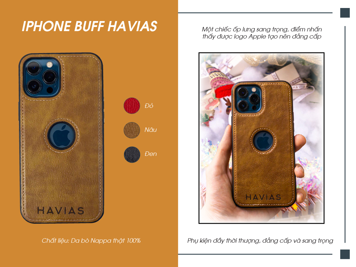 Một chiếc ốp lưng sang trọng với thiết kế điểm nhấn khoe trọn logo Apple càng làm tôn lên sự đẳng cấp của điện thoại. Ốp Lưng, Bao Da Điện Thoại iphone Buff được làm từ da bò thật 100%, có đến ba màu cho bạn lựa chọn thể hiện phong cách riêng. Hiện đại, tinh tế trong từng chi tiết lại được đảm bảo chất lượng từ HAVIAS.