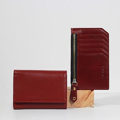 Couple Ví Seashell Grid Frame Navy & Rosy Luck Red Wallet