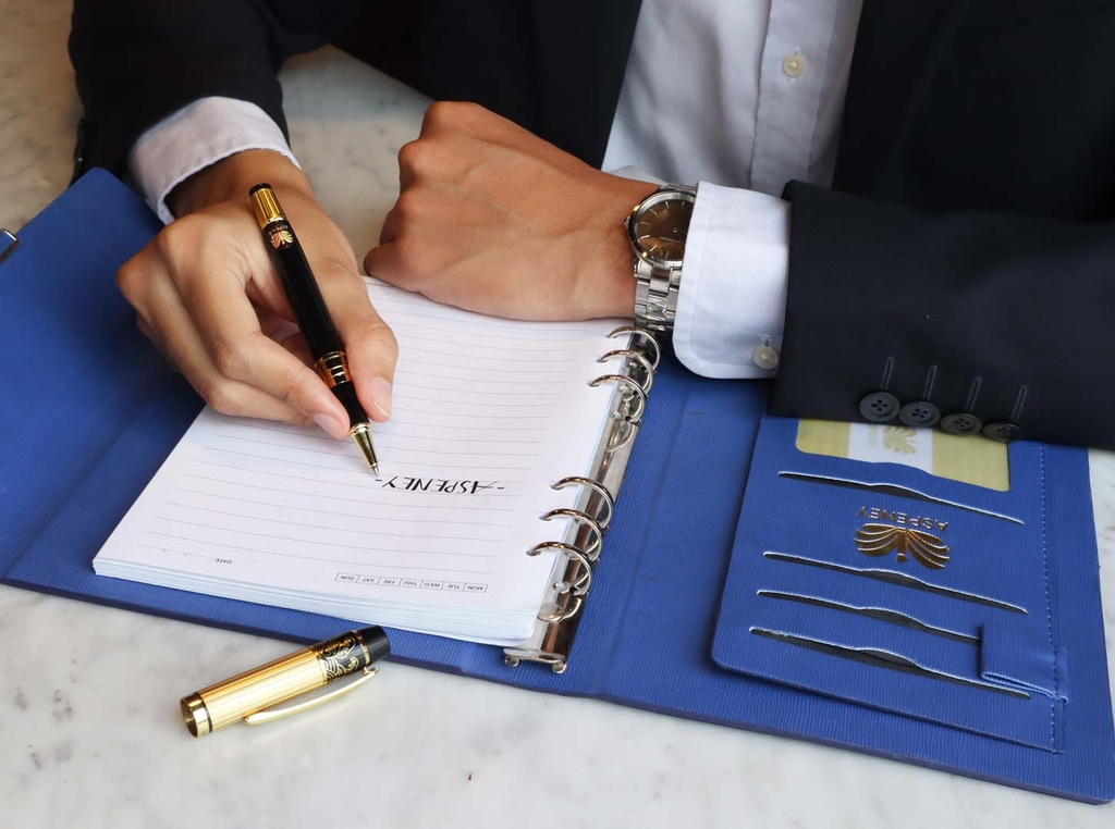 The EPI Italia premium leather notebook gift set combined with the Premium Earth Dragon ASPENEY signature pen is a perfect combination for you to choose as a gift for someone special. Each product from the gift set is made from extremely high-quality and valuable materials. Expresses the deep meaning that the giver wants to convey to the recipient. The notebook is made of high-quality EPI Italian leather, meticulously designed with high-quality pages, helping you record all important ideas and information every day. The EPI leather notebook also has a business card compartment inside. , visa cards and pen straps are extremely convenient in everyday work. Comes with an Earth Dragon ASPENEY signature pen made of super durable stainless steel over time with a super smooth and precise nib, powerful black color combined with 18K gold plating, creating a class for the wearer. own.