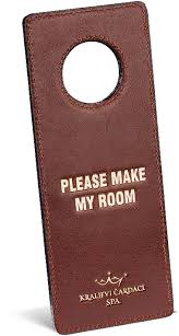 - Trong khách sạn, nhà nghỉ: Thẻ treo cửa phòng da được sử dụng để thông báo tình trạng phòng, yêu cầu dịch vụ,…