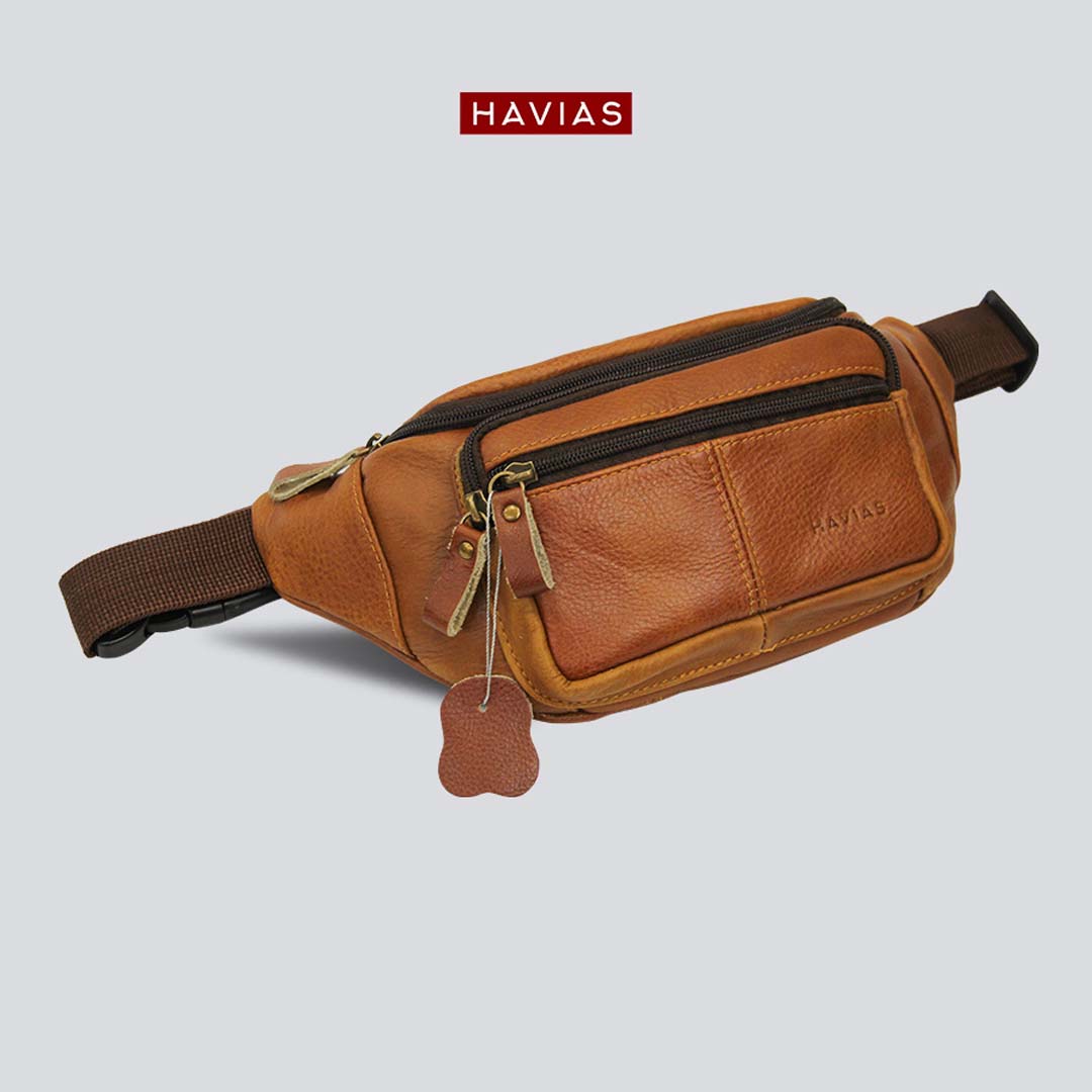 Bumbag HAVIAS crossbody & belly bag is one of HAVIAS's designs with a simple but extremely sophisticated, dynamic and modern look. With its compact design, it can hold your essentials. Dressed in Mill cowhide, HAVIAS is confident that you will not regret owning it. Because the impressive point of Mill leather is the preservation of the natural structure on the skin. The lack of stamping technology, scars, insect bites create a layer of material with wild beauty with places where there are seeds, where there is no, where there is a vein, where there is smooth. All make a very attractive difference. Besides, Mill wax leather has a very clear "water-on" effect, because the leather has a high roughness and is easy to scratch. Therefore leaving many streaks, after being in the water will be more glossy, will look like antiques.