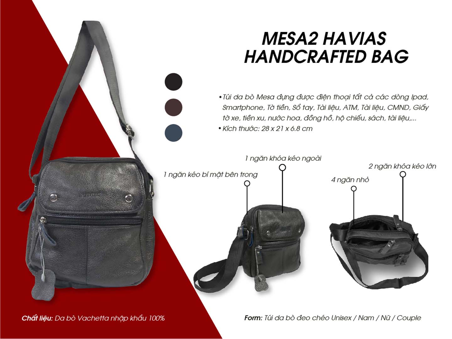 Túi đeo chéo da bò Mesa2 HAVIAS - Một chiếu túi với thiết kế đơn giản, tinh tế và không kém phần sang trọng. Bạn có thể đựng được tất cả những vật dụng cần thiết của bạn trong các chuyến hành trình. Với chất liệu là Da bò Vachetta làm cho chiếc túi mang dáng vẻ thanh lịch và thời trang dành cho những ai sở hữu nó.