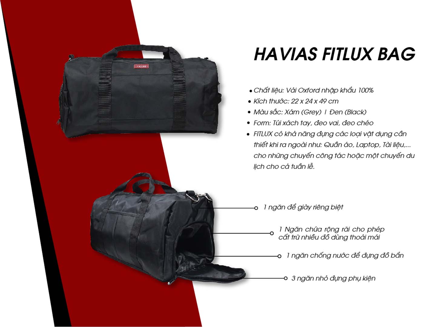 Để mô tả dòng sản phẩm mới cực kì chất lượng: Túi Gym Du lịch Fitlux HAVIAS, gói gọn trong 3 cụm từ: “Đa năng, tiện dụng, chắc chắn”.
