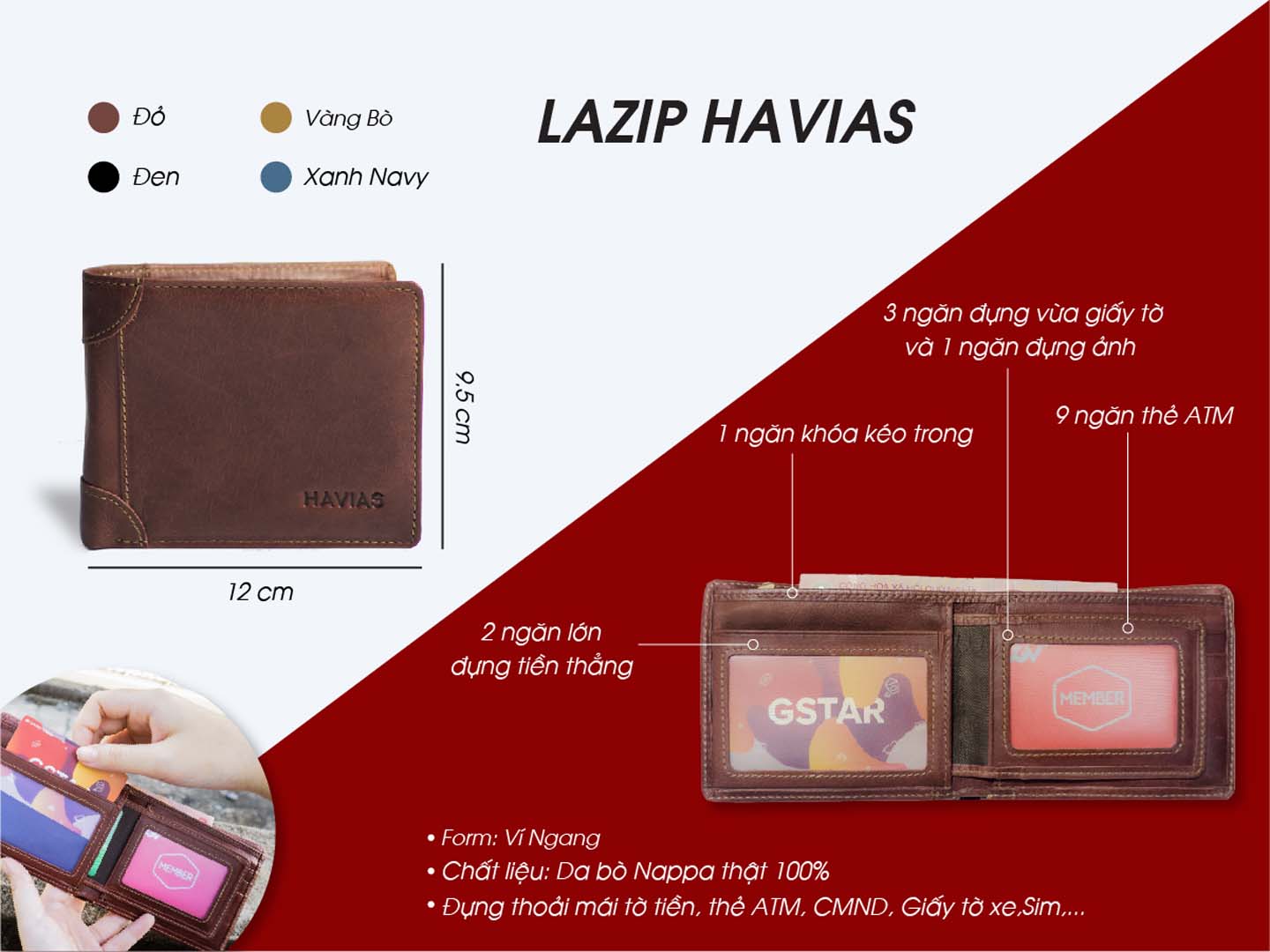 On the market there are many imitation leather products, simili, industrial leather, cheap but not high quality. Be a wise consumer, choose REAL LEATHER products with high DURABILITY. LAZIP cowhide wallet combined with a convenient and sturdy zipper, HAVIAS is committed to bringing quality products with the most reasonable prices so that all customers are satisfied and assured.