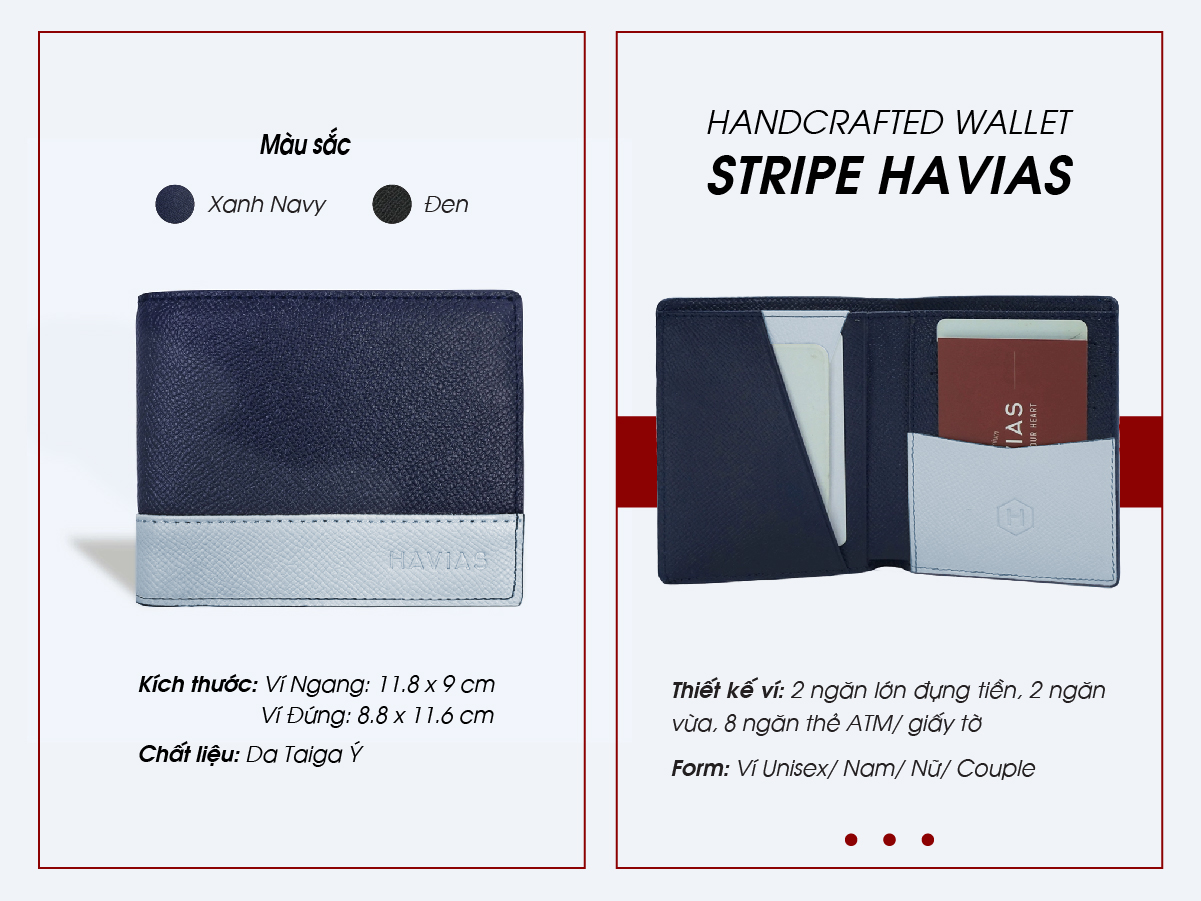 STRIPE Bifold Handcrafted Wallet is a wallet line with leather material imported directly from Italy. With a simple yet sophisticated style and a compact, convenient and easy-to-carry design, the STRIPE Bifold Handcrafted Wallet always asserts its position in the hearts of leather product enthusiasts.