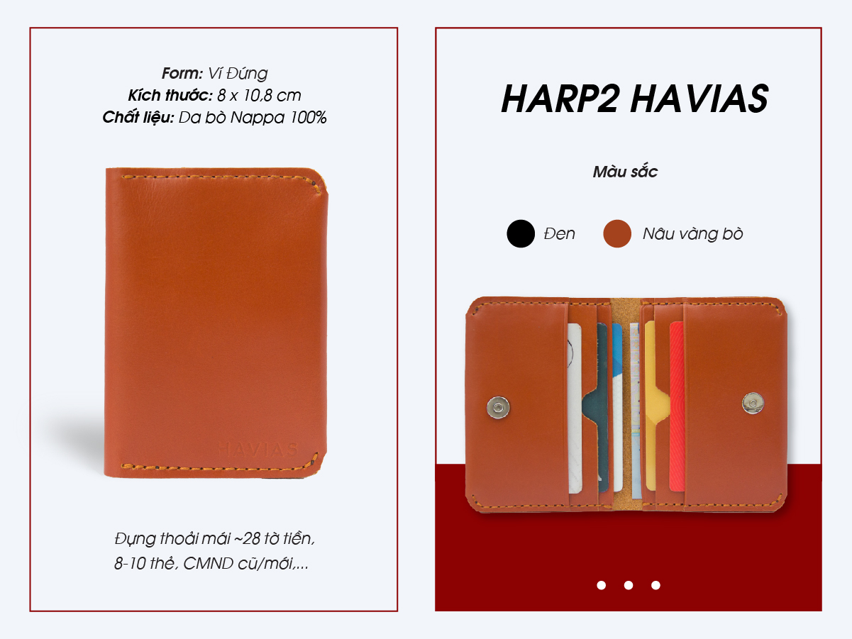 Mẫu Ví Da Harp2 Mini Wallet là một bước tiến mới về sự trải nghiệm da bò Nappa thật 100%, dựa trên mẫu ví da Harp Mini Wallet từng được săn lùng bởi cánh gấp cơ bản, tối giản nhất. HAVIAS đã tiếp tục nâng cấp thiết kế gấp đôi không chỉ giúp ví đựng được nhiều thẻ hơn mà còn giữ độ mỏng và vừa vặn cho mọi vị trí của túi quần, bên cạnh đó sản phẩm còn được trang bị nút hít nam châm "cực đã tay" ở hai bên giúp cho việc sử dụng dễ dàng và an toàn hơn. Ví hợp dùng cho cả nam và nữ, thoải mái đựng đủ tiền, visa card,... mà vẫn giữ được nét sang trọng.