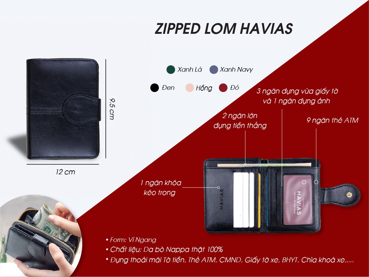 The LOM HAVIAS Zipped Folding Wallet is a unisex product suitable for all genders, with a streamlined design and a solid and smooth 3-layer copper-plated Zip hidden compartment. In particular, the product has a convenient compartment that can store USB, keys, ... LOM HAVIAS is made of shiny, luxurious, and not outdated Nappa cowhide, ensuring this will be a product for you. Castle. LOM HAVIAS products are intelligently designed, bringing extremely comfortable feeling to users when holding for a long time.