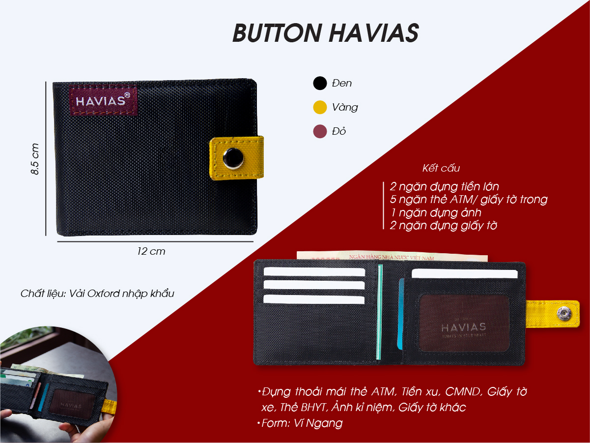 Possessing a dynamic and modern color scheme design, BUTTON HAVIAS Wallet fabric will bring an interesting experience when using. When it comes to Oxford fabric, especially Oxford bags, it has to be said about its durability and versatility. That's why Havias wants to bring the versatility of this material to create the best quality canvas wallet for customers.