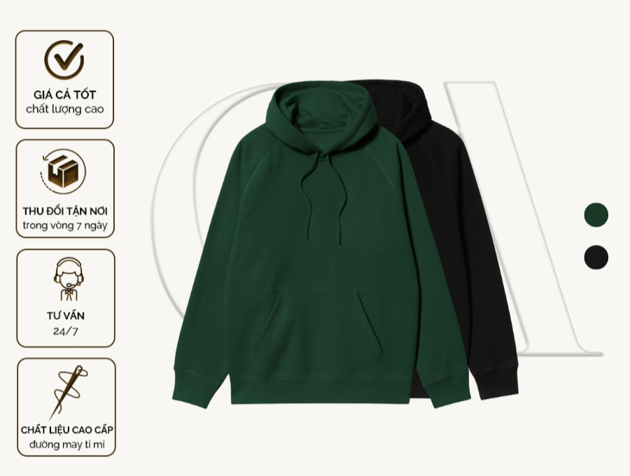 Đây là lựa chọn phù hợp cho các hoạt động ngoài trời hoặc các sự kiện mùa đông. Chúng tôi cung cấp áo hoodie chất lượng cao, thoải mái và dễ dàng in ấn logo hoặc hình ảnh.